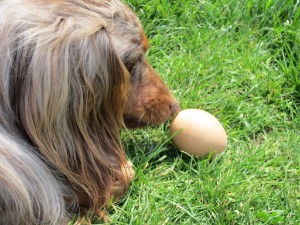 Ostern 2010 - das Erste in meinem Leben  | |  | |  | Habe von Frauchen ein Ei bekommen | | ....das ist aber ja noch mit Schale | | ....na, dann mache ich mich mal an die Arbeit |